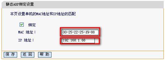 填入電腦的MAC地址與對應的IP地址,然后保存,就實現了IP與MAC地址綁定。