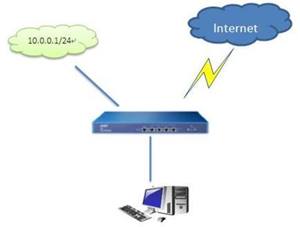 某公司內部網絡為“10.0.0.0/24”,同時接Internet外線,現需要使用FR90B來實現網絡中所有訪問內部網絡數據發往內部網絡,訪問外網的數據走Internet線路。