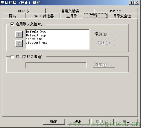 在這里設置網站的默認首頁文檔。在瀏覽器里輸入一個地址(例如http://luruihuaweb.vicp.net)訪問IIS的時候,IIS會在網站根目錄下查找默認的首頁文件,如果找到就打開,找不到就顯示“該頁無法顯示”。請在這里添加所需的默認首頁文件名,添加完后可以用左邊的上下箭頭排列這些文件名的查找順序。