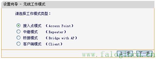步驟5:根據需要選擇AP的工作模式,此例選擇“接入點模式”,如下圖所示。