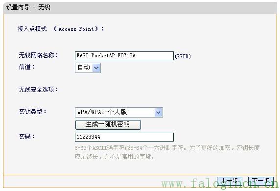 至此FWR171-3G AP模式配置完畢,此時電腦搜索到FWR171-3G發出無線SSID是FAST_PocketAP _F0718A,PSK密鑰是11223344。