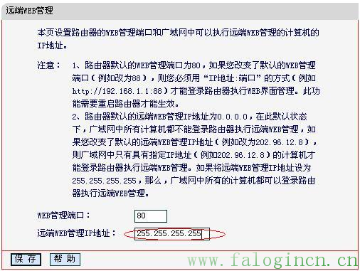 2、路由器默認的遠端WEB管理IP地址為0.0.0.0,在此默認狀態下,廣域網中所有計算機都不能登錄路由器執行遠端WEB管理,如果改變了默認的遠端WEB管理IP地址(例如改為202.96.12.8),則廣域網中只有具有指定IP地址(例如202.96.12.8)的計算機才能登錄路由器執行遠端WEB管理。如果將遠端WEB管理IP地址設為255.255.255.255,那么,廣域網中所有的計算機都可以登錄路由器執行遠端WEB管理。