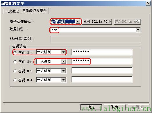 3)、最后要選中“密鑰#1”。(注意“WEP密鑰#1”后面的圓點)