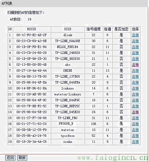 在掃描到的信號列表中選擇B路由器SSID號,如下圖中FW300R_B,點擊“連接”。